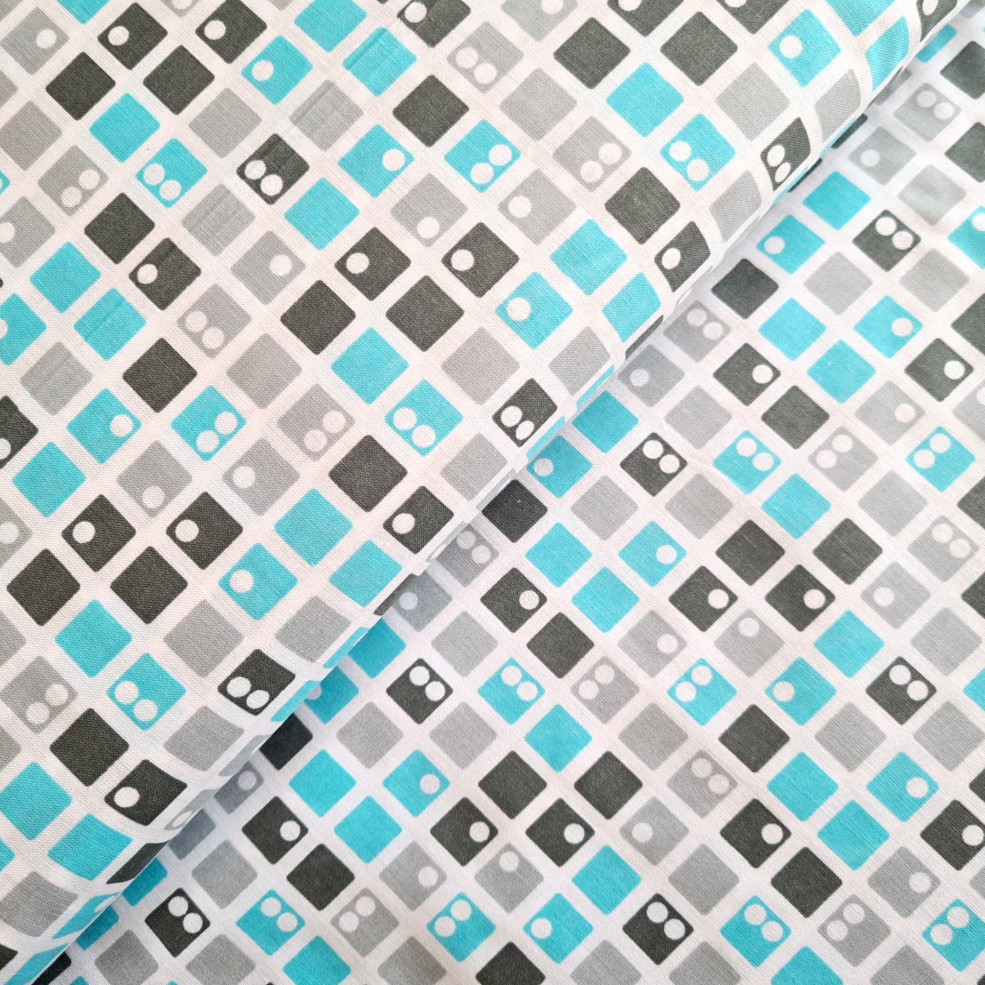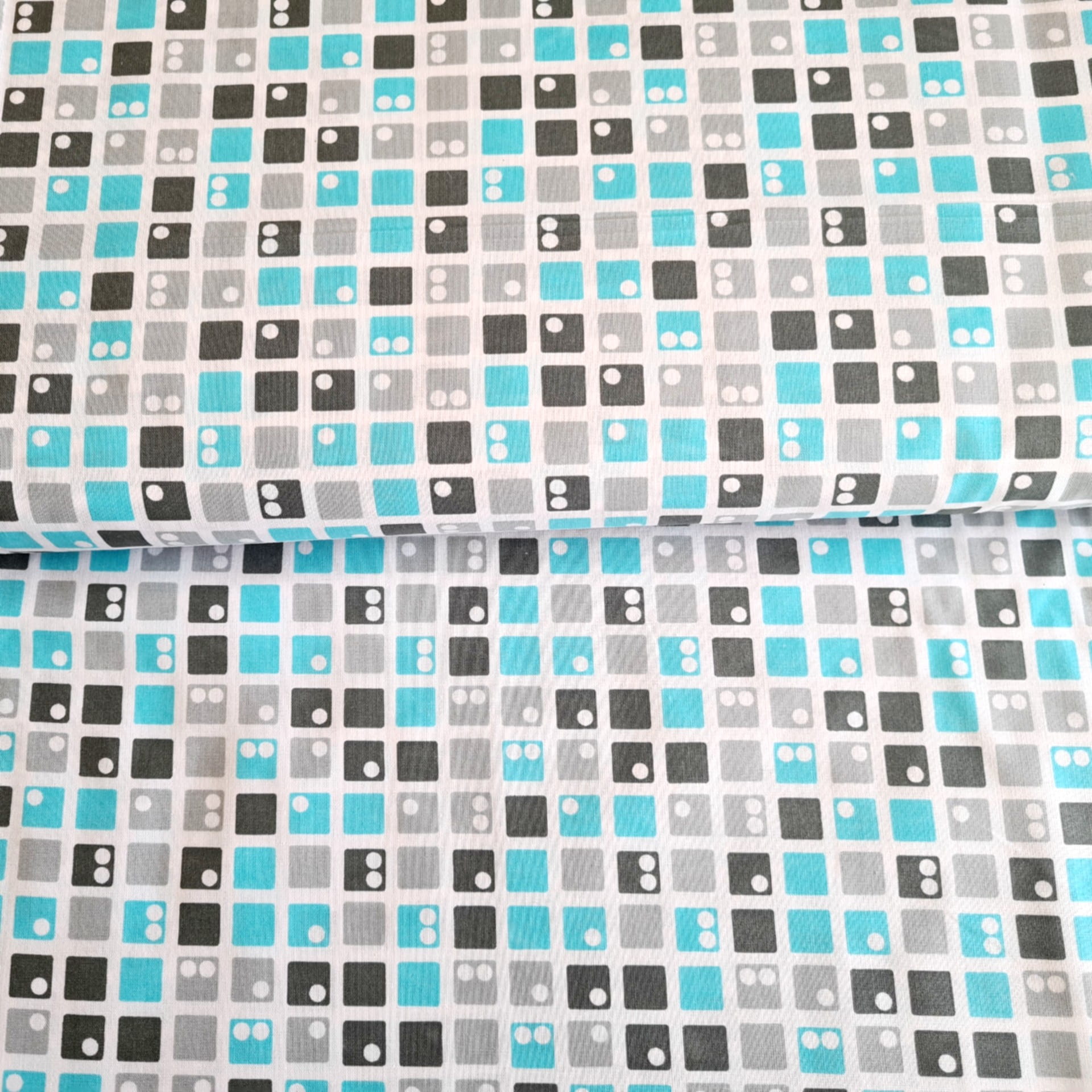 Tkanina bawełniana - GEOMETRYCZNE KWADRACIKI - turkusowe